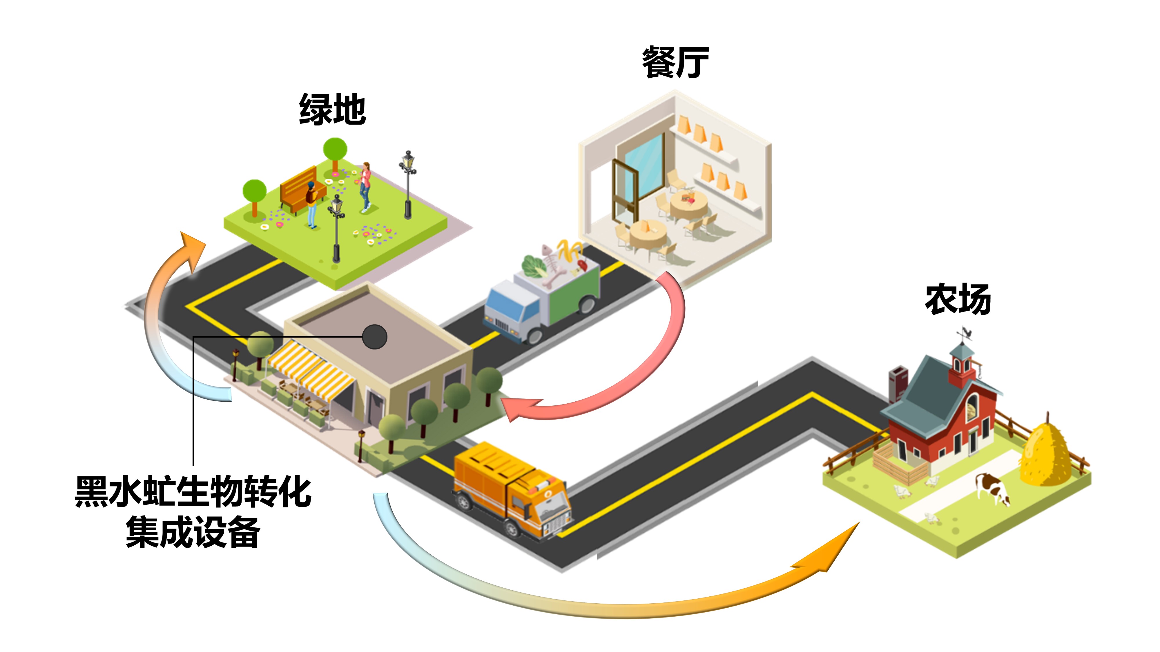 餐厨垃圾产量多、臭气大,实现其资源化利用是我国"无废城市"建设的关键目标。然而主流技术无法去除食物中的盐分,资源化率极低。在各种新技术中,黑水虻转化法资源化率和经济价值最高,但由于依赖额外饲料、产生污染多、占地面积大等问题,仍然无法应用于城市。